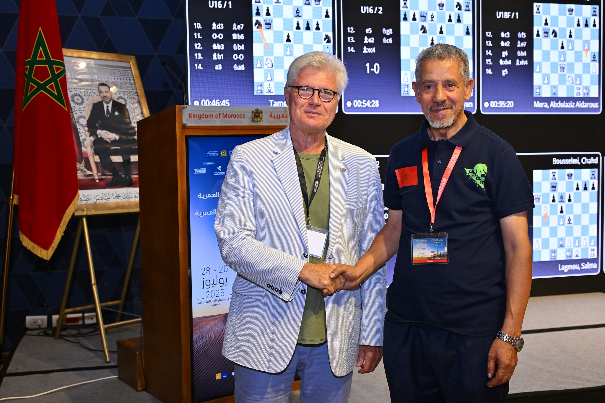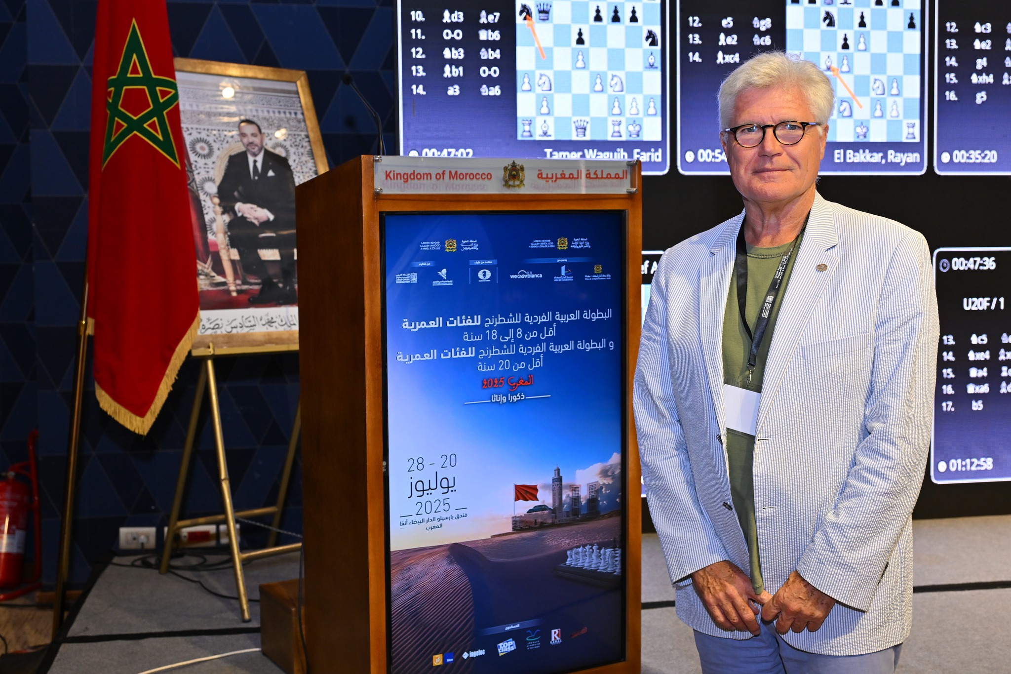 استقبلت البطولة العربية الفردية للفئات العمرية فئة أقل من 8 إلى 18 سنة والبطولة العربية الفردية للفئة العمرية أقل من 20 سنة بمدينة الدار البيضاء، السيد باتريك فان هولاند، رئيس الجمعية الدولية للشطرنج الفرنكوفوني (AIDEF)، في زيارة ميدانية إلى فضاء المنافسات.