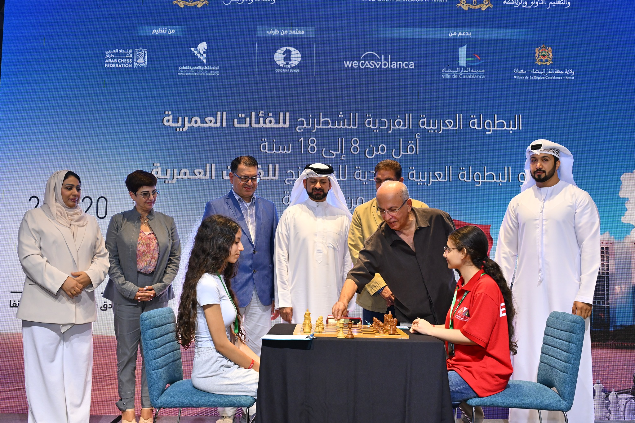تم إعطاء إشارة انطلاق الجولة السادسة من البطولة العربية الفردية للفئات العمرية فئة أقل من 8 إلى 18 سنة والبطولة العربية الفردية للفئة العمرية أقل من 20 سنة، من طرف سعادة الشيخ الدكتور خالد بن حميد القاسمي، رئيس الاتحاد العربي للشطرنج، وسعادة تريم مطر تريم، رئيس الاتحاد الإماراتي للشطرنج، بحضور ممثلي الوفود واللجنة المنظمة.