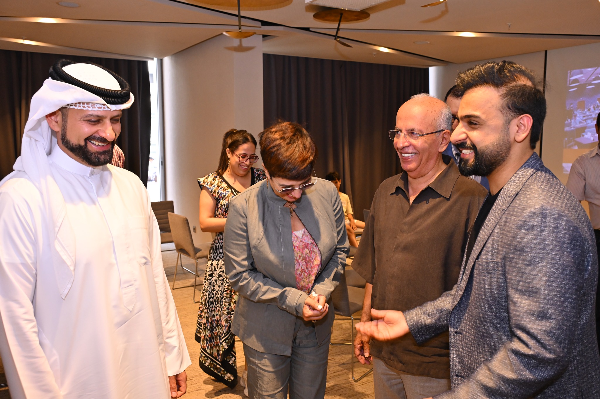 سعادة الشيخ الدكتور خالد بن حميد القاسمي، رئيس الاتحاد العربي للشطرنج، وسعادة تريم مطر تريم، رئيس الاتحاد الإماراتي للشطرنج يعطون شارة انطلاق الجولة السادسة