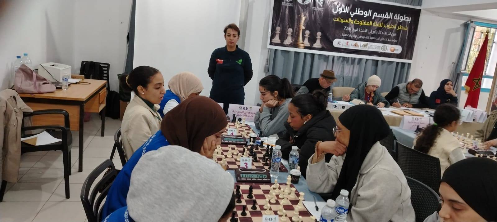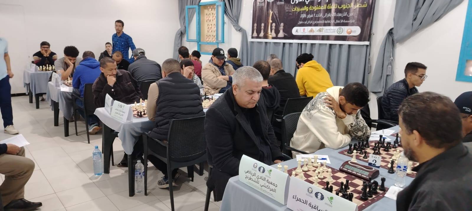 تتواصل أجواء التحدي والإثارة بمدينة إنزكان ايت ملول، حيث تجرى في هذه الاثناء صباح يوم السبت 31 ماي 2026الجولة السادسة من البطولة الوطنية للفرق المفتوحة والسيدات للشطرنج، ضمن القسم الوطني الأول – شطر الجنوب.