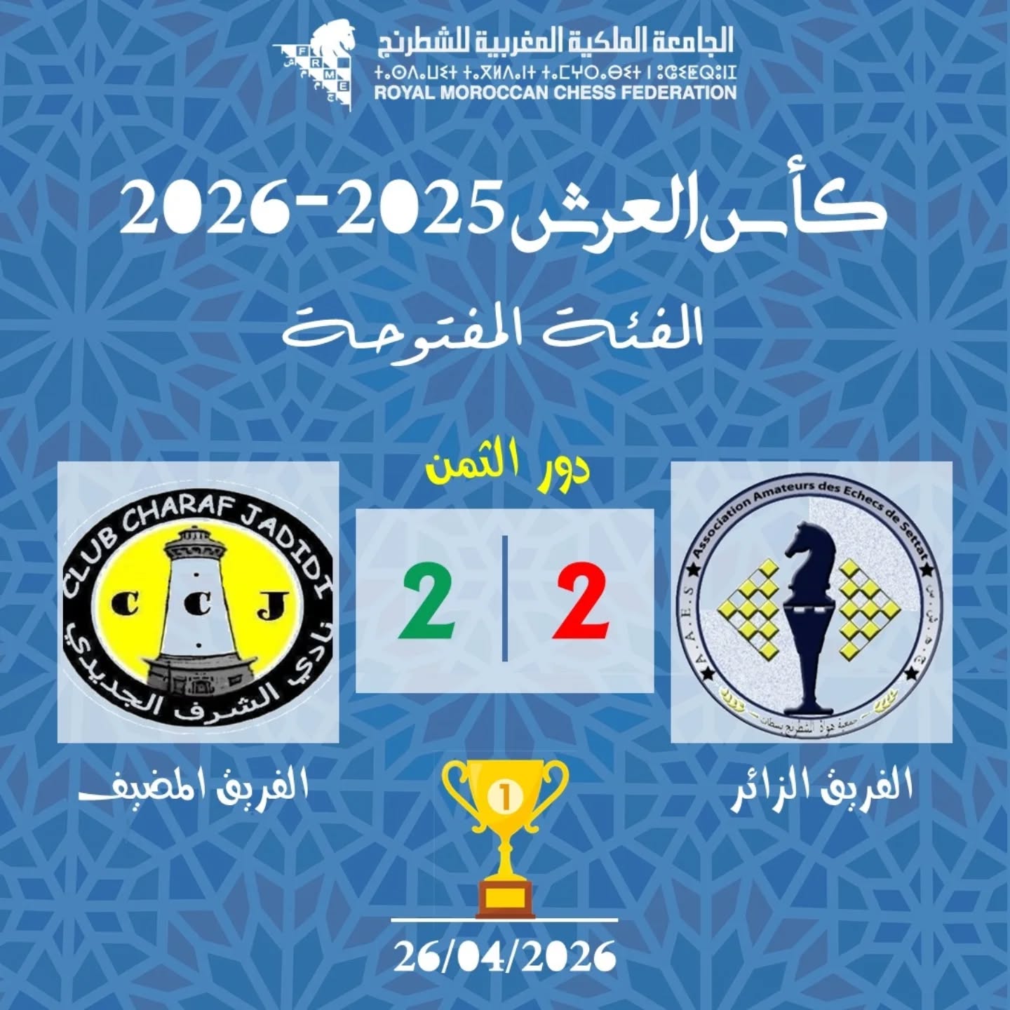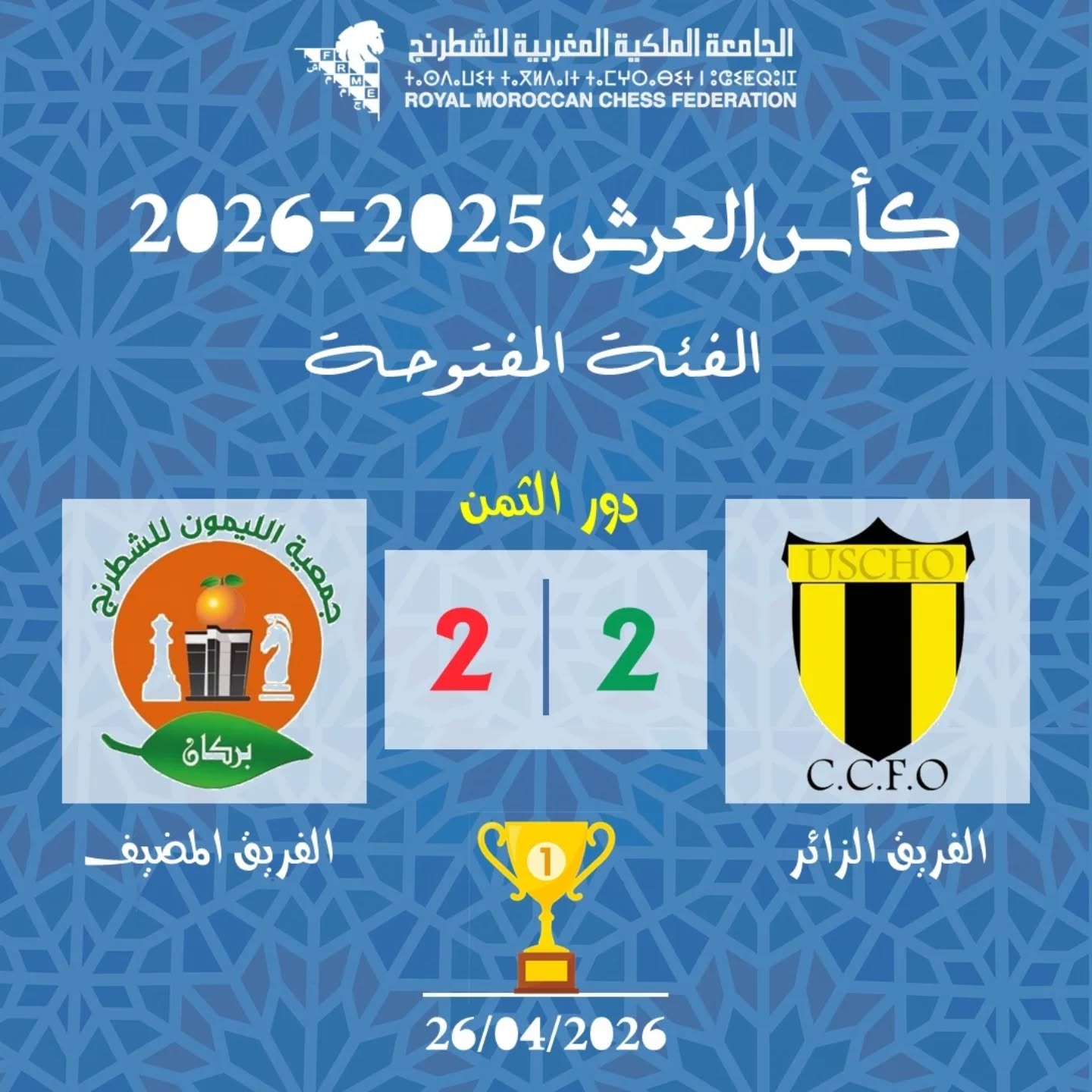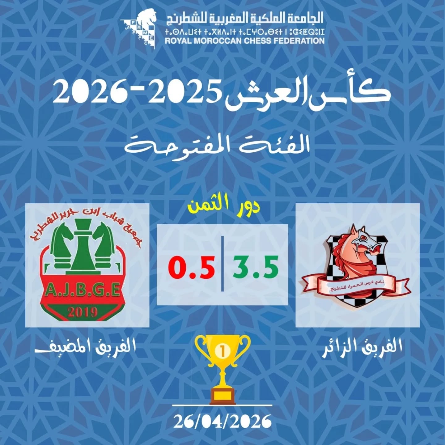 نتائج دور الثمن للفئة المفتوحة من كأس العرش , للموسم الرياضي 2025/2026